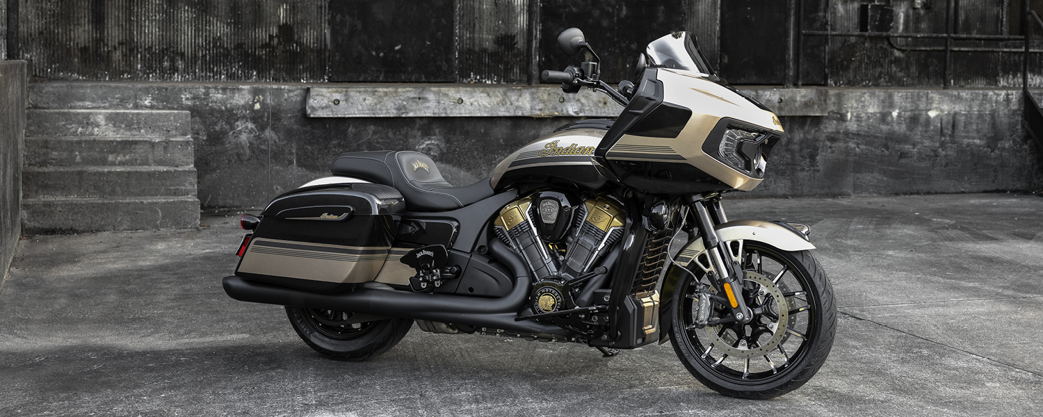 Nicht nur ihr exklusives Design mit Sonderlackierung, speziell gravierten Trittbrettern, Sitz aus echtem Leder und nummerierter Jack Daniel's® Montana Silversmiths®-Plakette macht die 2022 Jack Daniel's® Limited Edition Indian Challenger zu etwas ganz Besonderem. Auch die technische Ausstattung ist vom Feinsten: Adaptive Pathfinder LED-Scheinwerfer, hintere Stoßdämpfer mit elektronisch einstellbarer Vorspannung, Powerband-Audio, Ride Command und natürlich der flüssigkeitsgekühlte PowerPlus V-Twin mit 1768 Kubikzentimetern, 122 PS und satten 178 Nm Drehmoment.